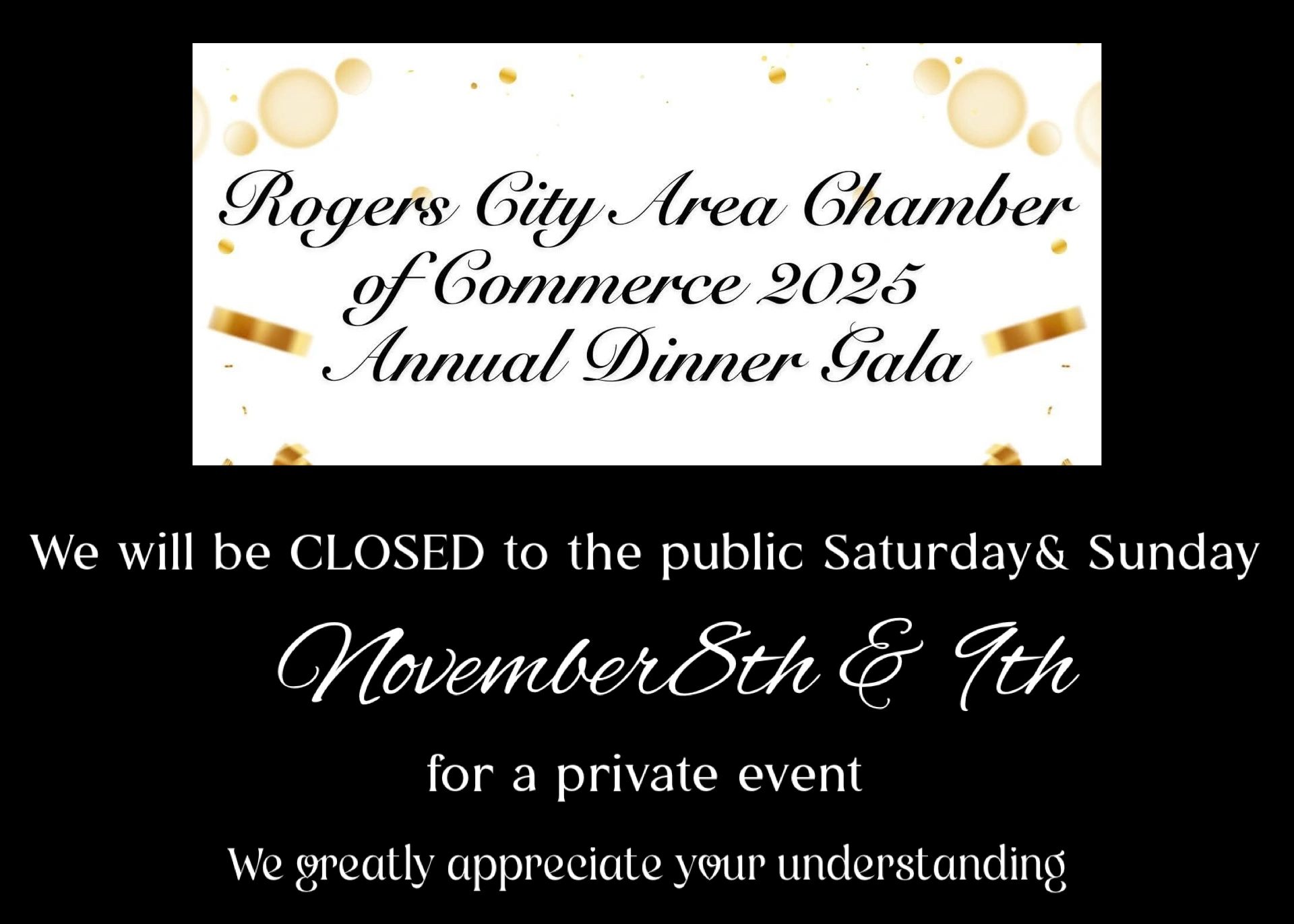 We will be closed to the public Saturday & Sunday November 8th & 9th